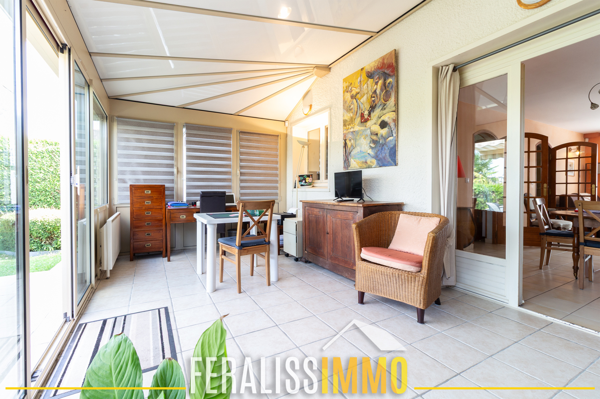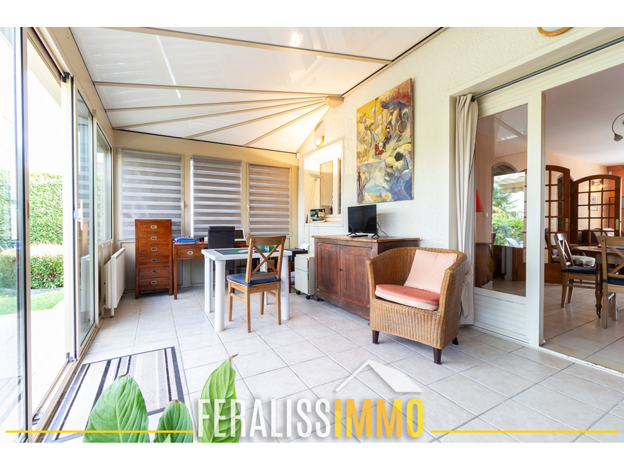Rare sur le secteur ! Dans un quartier très recherché et dans un environnement calme au milieu de la verdure, venez découvrir cette jolie maison à la décoration soignée ! Elle vous offre au rez-de-chaussée : une entrée avec placard, un double séjour avec 1 cheminée insert ouvrant sur une belle véranda, 1 cuisine entièrement aménagée et équipée, 1 chambre donnant accès à un grenier pour le rangement, 1 salle d'eau, 1 WC indépendant ; à l'étage : palier ouvrant sur 3 chambres avec des placards, 1 salle d'eau avec WC. LES PLUS : Climatisation réversible, terrasse bien exposée avec store banne électrique, abri bois et 2 abris de jardin. Le tout sur un joli terrain paysager d'environ 300 m2, également sans aucun vis-à-vis ! Classe énergie : D, Classe climat : B. Montant estimé des dépenses annuelles d'énergie pour un usage standard : entre 1 620 EUR et 2 260 EUR par an (prix moyens des énergies indexés sur les années 2021, 2022, 2023). Les informations sur les risques auxquels ce bien est exposé sont disponibles sur le site Géorisques : www.georisques.gouv.fr. Réf : 9746.