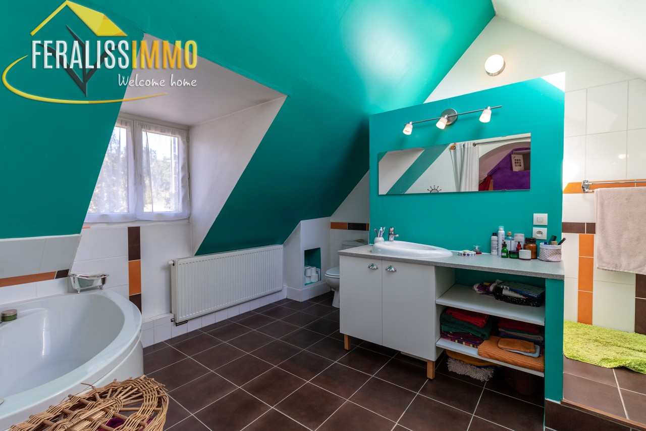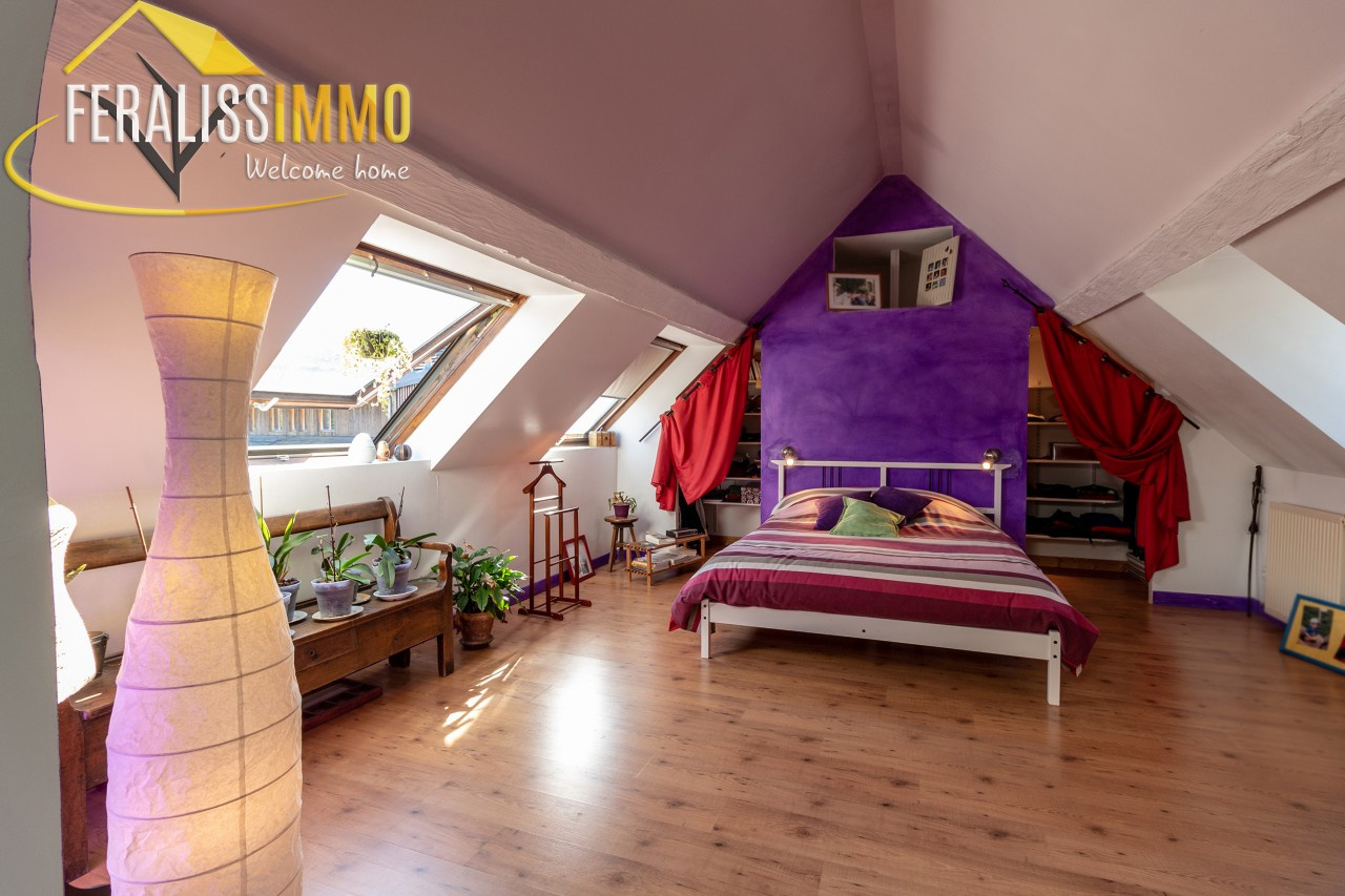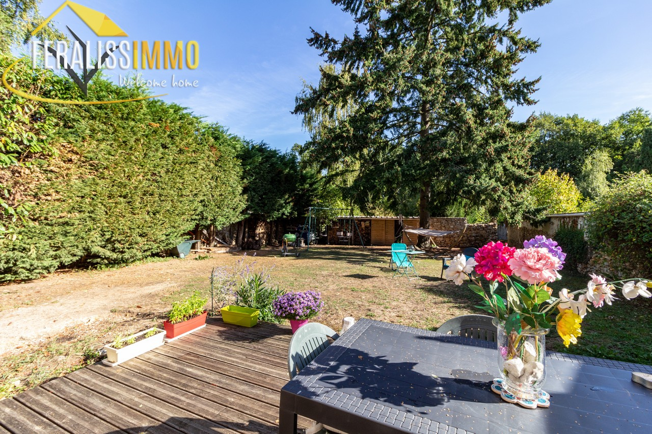 Au milieu de son jardin arboré et clos, cette chaleureuse et spacieuse maison de caractère vous offre au rdc : une entrée -bureau, une vaste cuisine aménagée et équipée avec un coin salle à manger, un salon avec poêle ouvrant sur des terrasses ensoleillées, une chambre, une salle d'eau, une buanderie, un cellier, au 1er étage : 3 chambres, une salle de bains. chauffage au gaz. Le terrain de 1100 m2 est entièrement clos avec une partie potager donnant accès à la forêt avec de belles promenades. Classe énergie : E, Classe climat : D. Montant estimé des dépenses annuelles d'énergie pour un usage standard : entre 3 100 EUR et 4 270 EUR par an (prix moyens des énergies indexés au 1er janvier 2021). Les informations sur les risques auxquels ce bien est exposé sont disponibles sur le site Géorisques : www.georisques.gouv.fr. Réf : 9646.