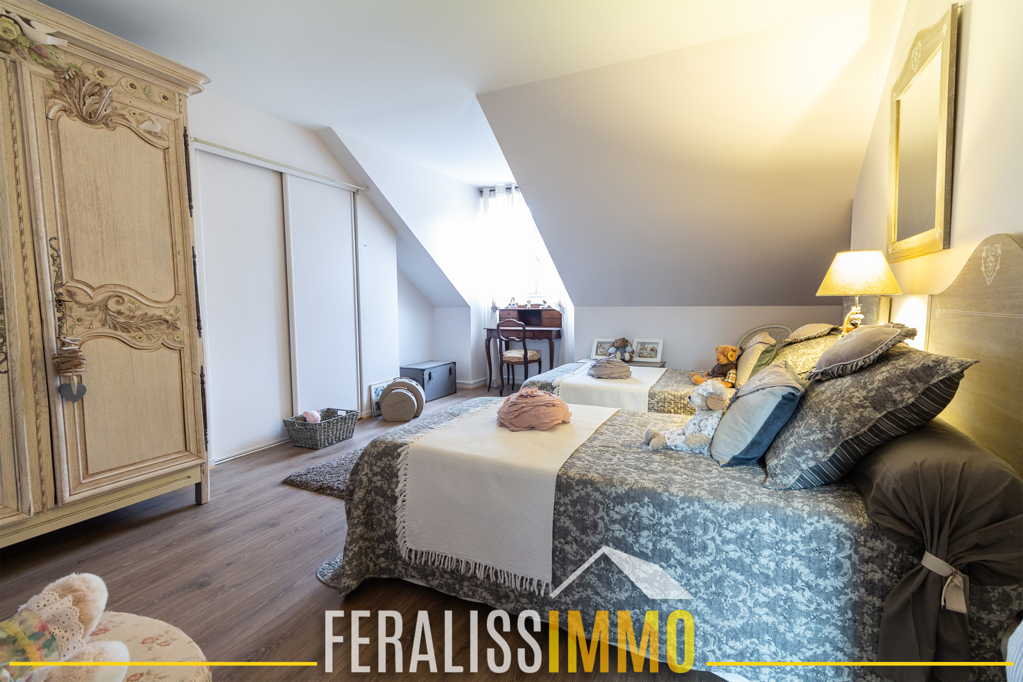Laissez-vous séduire par cette maison pleine de charme, idéale pour accueillir toute votre famille. Avec ses 180 m2 de surface habitable et son jardin clos d'environ 570 m2, elle offre un cadre de vie convivial et chaleureux. Au rez-de-chaussée, vous serez immédiatement conquis par un triple séjour baigné de lumière avec cheminée, parfait pour vos soirées au coin du feu. Une cuisine séparée et équipée, une chambre avec salle d'eau privative, un bureau et un cellier complètent ce niveau. À l'étage, une agréable mezzanine dessert 3 chambres confortables, une salle de bains, une salle d'eau et un WC indépendant : chacun y trouvera son espace ! Côté pratique, vous apprécierez le garage attenant et le chauffage individuel au gaz de ville. Prix de vente : 549 900 EUR dont 3.95 % TTC de commission d'agence à la charge de l'acquéreur, soit prix de vente hors honoraires : 529 000 EUR. Classe énergie : D, Classe climat : D. Montant estimé des dépenses annuelles d'énergie pour un usage standard : entre 2700 EUR et 3700 EUR par an (prix moyens des énergies indexés en 2021, 2022 et 2023). Les informations sur les risques auxquels ce bien est exposé sont disponibles sur le site Géorisques : www.georisques.gouv.fr. Réf : 9888