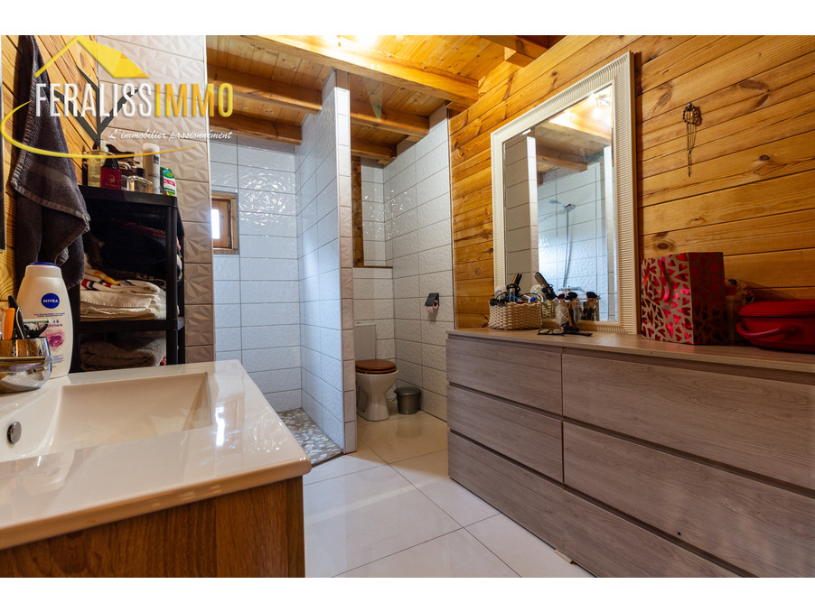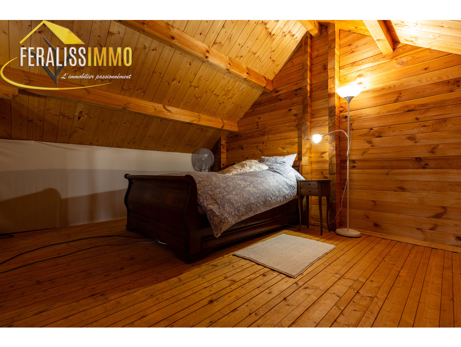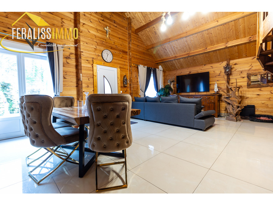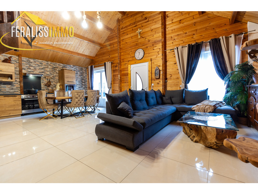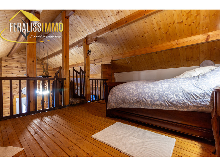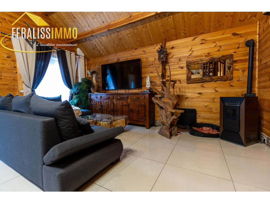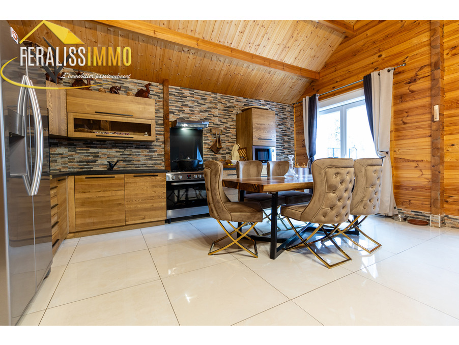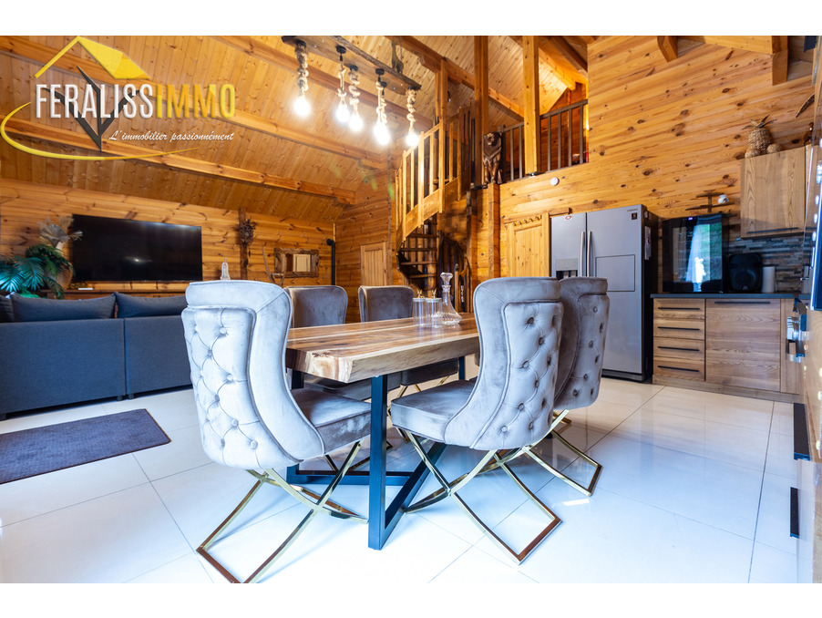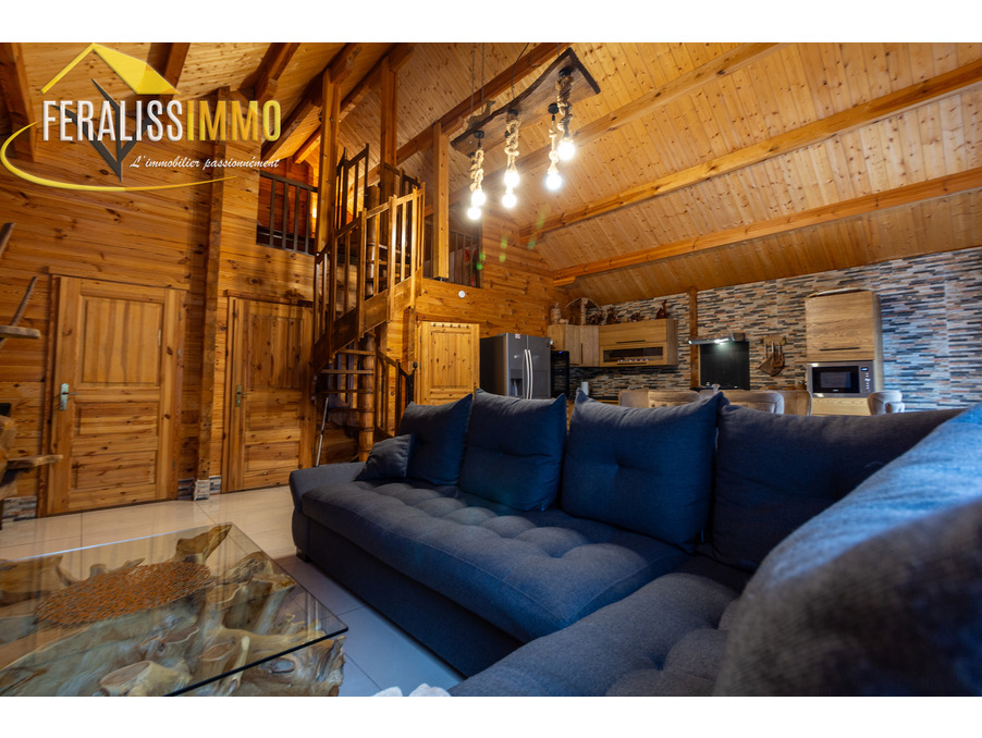 Envie de vivre en vacances toute l'année ? Ce magnifique chalet de fabrication suisse vous plonge immédiatement dans l'atmosphère chaleureuse et authentique des Alpes. Dès l'entrée, vous serez séduit par un vaste espace de vie ouvert, agrémenté d'un plafond cathédrale qui confère une belle hauteur sous plafond. Le poêle à granulés performant vous assurera une chaleur agréable tout au long de l'année, tandis que la cuisine moderne, entièrement aménagée et équipée, ravira les amateurs de gastronomie (avec un piano de cuisson et une cave à vins en prime !). Au rez-de-chaussée, vous trouverez une grande chambre lumineuse, donnant sur le jardin, ainsi qu'une buanderie qui peut également servir de bureau ou de chambre supplémentaire. Une spacieuse salle d'eau avec WC complète ce niveau. À l'étage, une chambre en mezzanine offre un espace cosy et intime. Le tout est implanté sur un vaste terrain de 900 m2, offrant de nombreuses possibilités d'aménagement et d'activités en extérieur. Un véritable havre de paix à découvrir sans tarder ! Classe énergie : D, Classe climat : A. Montant estimé des dépenses annuelles d'énergie pour un usage standard : entre 920 EUR et 1 300 EUR par an (prix moyens des énergies indexés au 1er janvier 2021). Les informations sur les risques auxquels ce bien est exposé sont disponibles sur le site Géorisques : www.georisques.gouv.fr. Réf : 9112.