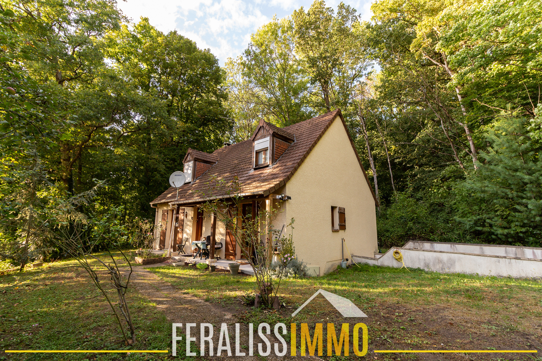 Dans un magnifique écrin de verdure, à la lisière de la forêt, cette chaleureuse maison a besoin d'un petit coup de main pour lui redonner son éclat ! La maison a subi quelques désordres de structures et il est conseillé d'effectuer des travaux de reprise en sous-oeuvre et également des travaux de rafraichissement pour la rendre encore plus confortable. Actuellement la maison est habitée et la famille profite au rdc d'une entrée, d'un salon carrelé avec des portes-fenêtres qui donne accès à 2 terrasses, une cuisine fermée aménagée et semi équipée (gazinière), la porte-fenêtre de la chambre donne sur le jardin fleuri. Au 1er étage, un escalier nous conduit à un palier qui distribue 3 chambres dont 1 avec placard. Nous avons accès au sous-sol aménagé ( pièce de stockage, atelier, buanderie, garer 2 voitures) par la maison et par l'extérieur. La maison est chauffée par des radiateurs électriques et une cheminée avec insert. Vous pourrez avoir la visite des écureuils, des biches dans ce grand terrain de 2200 m2 non constructible et non divisible. Si vous avez envie de profiter du chant des oiseaux chaque jour, je vous invite à me rappeler afin de convenir d'une visite ! Prix de vente : 244 900 EUR dont 4.93 % TTC de commission d'agence à la charge de l'acquéreur, soit prix de vente hors honoraires : 233 400 EUR. Classe énergie : E, Classe climat : B. Montant estimé des dépenses annuelles d'énergie pour un usage standard : entre 2 140 EUR et 2 950 EUR par an (prix moyens des énergies indexés sur les années 2021, 2022, 2023). Les informations sur les risques auxquels ce bien est exposé sont disponibles sur le site Géorisques : www.georisques.gouv.fr. Réf : 9871.